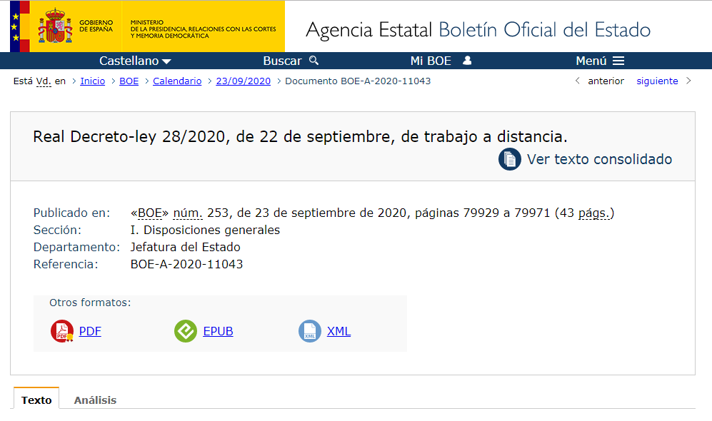 El martes 22 se ha anunciado la primera normativa específica sobre teletrabajo de España. La publicación en el BOE se ha producido ya el miércoles 23, aunque no legisla retrospectivamente lo sucedido durante la pandemia. El objetivo: aprovechar las nuevas tecnologías para aumentar la productividad general, algo especialmente urgente en un momento en que el riesgo de parón casi total y de cierres de empresas en cascada está lastrando toda la economía y poniendo en peligro el futuro.