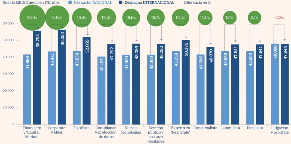 Datos estadísticos de cuánto cobra un abogado sueldo según su especialidad