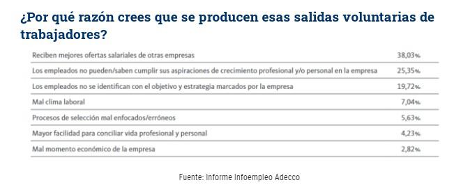 Según otro informe de Adecco, reseñado en 2019 en la publicación Observatorio Recursos Humanos, las empresas consideran, justo por detrás del salario, las oportunidades de crecimiento personal y la identificación con los objetivos o estrategia de la empresa como los principales motivos para la marcha de empleados. ¡Qué importante es la motivación!