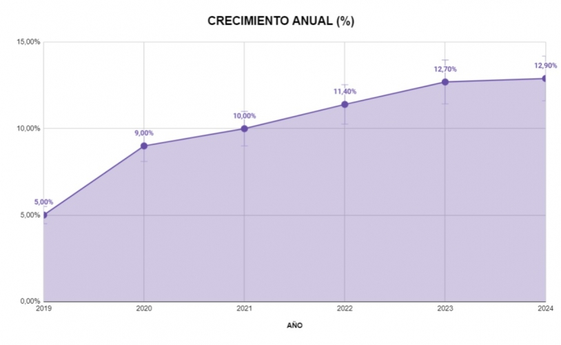 La tendencia positiva se mantuvo en 2023, con 7.800 asesores registrados y un crecimiento del 12,7%. Para 2024, se prevé que el sector alcance los 8.500 asesores, con un crecimiento anual del 12,9% y una tendencia estable. Estos datos reflejan un crecimiento continuo y sostenido en el sector de la asesoría de imagen en España, indicando una demanda creciente y una consolidación del mercado en los últimos años.