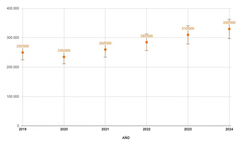 El crecimiento continuó en 2022 con una subida del 10% adicional, alcanzando los 285.000 asesores. Este incremento refleja una estabilización económica y un creciente interés en el asesoramiento empresarial. En 2023, el número ascendió a 310.000, con un crecimiento del 9%, sugiriendo una consolidación del sector. Finalmente, en 2024, el número de asesores llegó a 330.000, con una tasa de crecimiento del 6%, lo que, aunque indica una desaceleración en el ritmo de expansión, demuestra una demanda sostenida y una continua expansión del sector de asesoramiento empresarial en España.