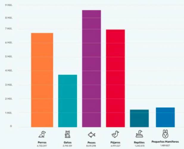 A continuación podemos ver una tabla de la cantidad de mascotas existentes en España: