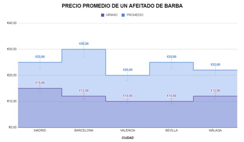El precio medio de un afeitado de barba varía entre 10€ y 30€, dependiendo de la ciudad y del establecimiento. En Madrid, este servicio suele costar entre 15€ y 25€. En Barcelona, los precios oscilan entre 12€ y 30€. En Valencia, el coste medio es de 10€ a 20€, mientras que en Sevilla se sitúan en el rango de 10€ a 25€. En Málaga, los precios para un afeitado de barba van de 12€ a 22€. Estos precios reflejan una amplia gama de servicios, que van desde opciones más económicas hasta las más exclusivas.