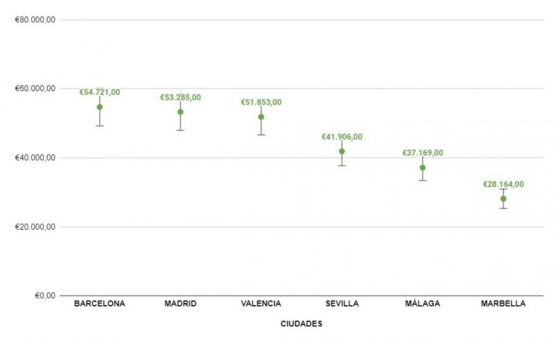 Estas variaciones salariales están estrechamente relacionadas con la demanda de perfiles especializados y el coste de vida en cada ciudad. En las grandes urbes como Barcelona y Madrid, las perspectivas salariales son mejores debido a la mayor concentración de empresas y oportunidades de negocio, en comparación con localidades más pequeñas como Marbella, donde la oferta es más limitada y los sueldos reflejan una menor demanda.