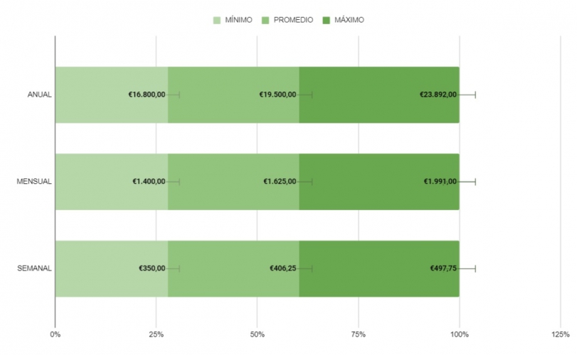 En términos semanales, el salario mínimo es de 350 euros, el promedio es de 406,25 euros y el máximo puede llegar a 497,75 euros. Estas cifras evidencian la variabilidad en la remuneración de los camareros, que está influenciada por factores como la ubicación del establecimiento, su tamaño y el nivel de responsabilidad del puesto.