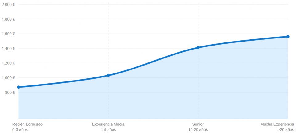 Otro factor a tomar en cuenta para el sueldo de carretillero es la experiencia que tiene el profesional en el puesto, a continuación te mostramos una gráfica que representaría el sueldo promedio mensual según la experiencia del profesional: