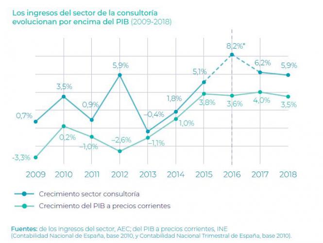 El sector de la consultoría, como decíamos al principio, está en alza, con incrementos de más del 5%, por encima del PIB. La revista Computing (gráfica) publicó en 2019 que fue además un sector con mucha inversión en innovación, el 2,8 de sus ingresos, lo cual constituye más del doble de la media de nuestro país.