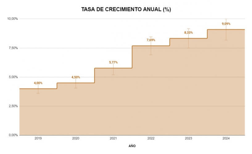 En los últimos años, el sector de los electricistas de vehículos ha mostrado una notable tendencia de crecimiento. En 2019, la tasa de crecimiento anual era del 4,00%, y desde entonces ha aumentado de manera constante. En 2020, el crecimiento se incrementó al 4,50%, alcanzando un 5,77% en 2021. Este patrón positivo continuó en 2022 con un crecimiento del 7,69% y en 2023 con un 8,33%. Estas cifras reflejan una creciente demanda de profesionales especializados en el mantenimiento y reparación de sistemas eléctricos en vehículos.