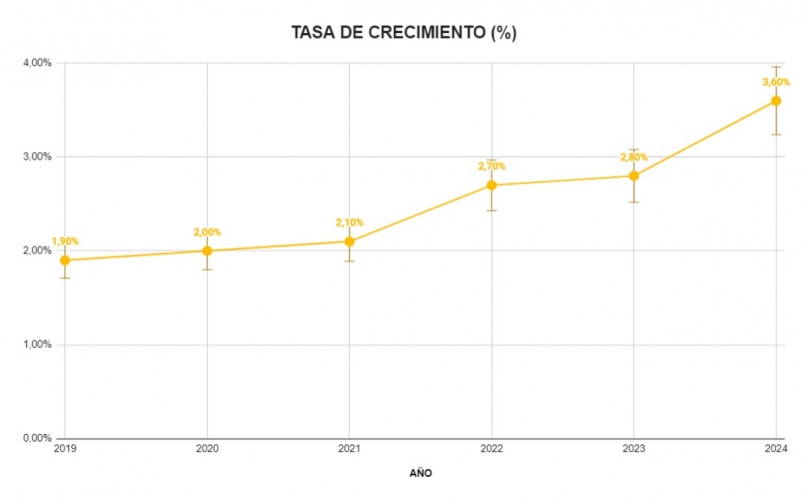 El año 2024 ha sido especialmente destacable, con la tasa de crecimiento del empleo en el sector alcanzando un 3,60%. Este notable incremento sugiere una expansión significativa en la industria, posiblemente impulsada por un aumento en la demanda de servicios o una expansión de la oferta en el sector. La tendencia ascendente en los últimos años indica un robusto crecimiento y una adaptación positiva del sector a las necesidades del mercado, consolidando su importancia en el ámbito de los servicios funerarios.