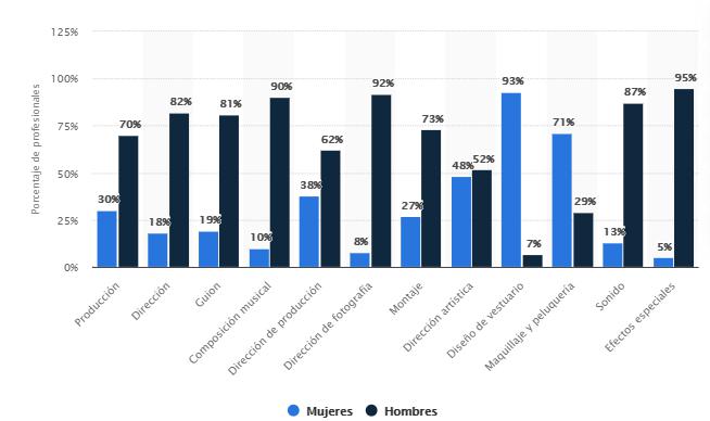 Podemos ver que los puestos en diseño de vestuario estuvieron ocupados casi en su totalidad por mujeres, con un porcentaje del 93%.