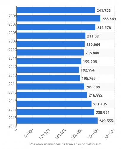 Según estudios recientes, el sector logístico crea cada mes más de 86.000 puestos de trabajo en todo el mundo. Para hacernos una idea más completa de este área, en el siguiente gráfico podemos observar el volumen de mercancías transportado por carretera en España en los últimos trece años. El transporte de productos se gestiona desde el departamento logístico: