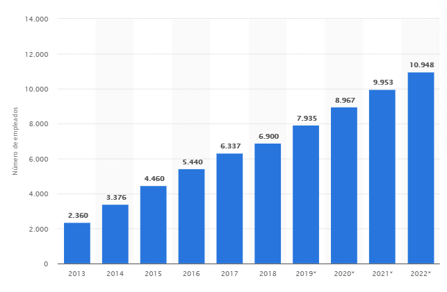 En cuanto al empleo en el sector, el siguiente gráfico muestra los datos de los últimos años y una previsión del número de empleados de la industria española para 2022.