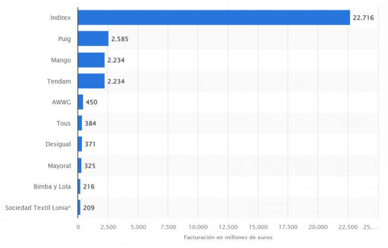 A continuación podemos observar las cifras obtenidas por las mayores empresas de moda en España: