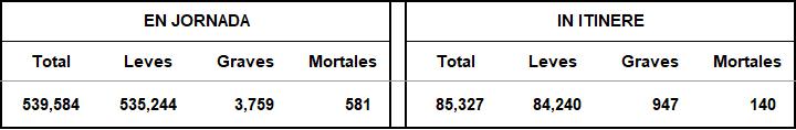 Y la cantidad de accidentes según datos del Ministerio de Trabajo y Economía Social nos presenta la siguiente tabla de accidentes durante la jornada y in itinere: