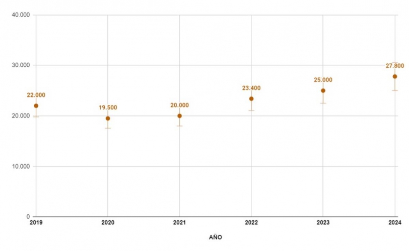 En los últimos años, el interés por estudiar Ingeniería Petrolera ha mostrado una notable tendencia al alza. En 2019, el número de estudiantes interesados en esta carrera era de 22.000, cifra que experimentó una ligera disminución en 2020, con 19.500 aspirantes. Sin embargo, a partir de 2021, se observó un repunte, alcanzando los 20.000 estudiantes interesados, y en 2022 el número subió significativamente a 23.400. Este crecimiento continuó en 2023, con un total de 25.000 estudiantes, y se prevé que en 2024 se llegue a una cifra récord de 27.800 interesados.