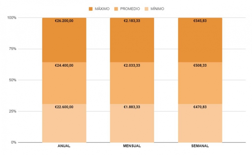 Los ingresos anuales pueden oscilar entre 22.600 € en el extremo inferior y 26.200 € en el superior. Este rango se traduce en un salario mensual de 1.883,33 € a 2.183,33 € y semanalmente, los ingresos pueden variar entre 470,83 € y 545,83 €. La variabilidad en el salario refleja la influencia de diversos factores en el mercado laboral del sector textil.