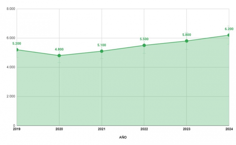 En los años siguientes, el crecimiento se consolidó aún más. En 2023, el número de jefes de producto textil llegó a 5.800, y se prevé que para 2024 esta cifra ascienda a 6.200. Este aumento constante refleja una recuperación robusta y un crecimiento sostenido en el sector textil, indicando una creciente demanda de profesionales especializados en la gestión de productos textiles y un mercado en expansión.