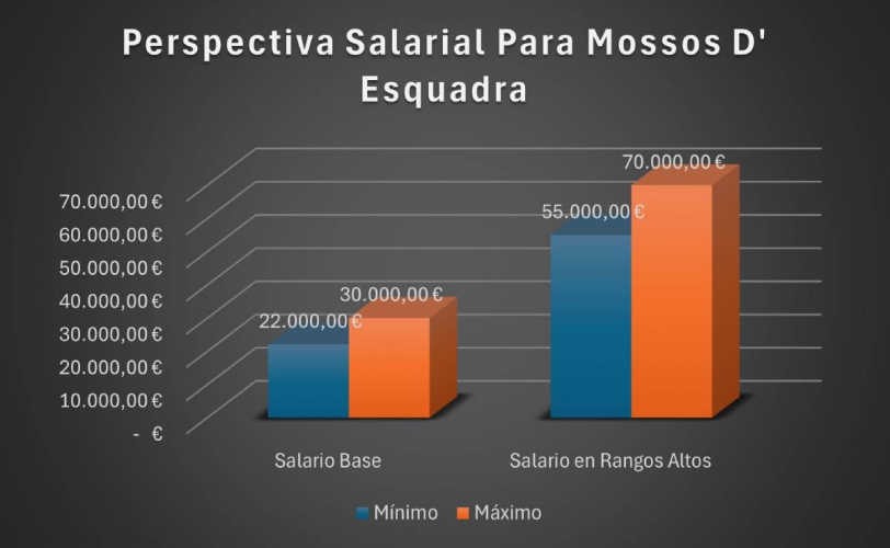 A medida que un Mosso d'Esquadra avanza en su carrera y asciende a rangos superiores, como cabo, sargento o inspector, el salario anual también aumenta. Por ejemplo, un cabo puede ganar entre 35,000 y 40,000 euros brutos al año, mientras que un sargento puede llegar a percibir entre 45,000 y 50,000 euros brutos anuales. Los inspectores y comisarios, que ocupan los rangos más altos, pueden alcanzar salarios de entre 55,000 y 70,000 euros brutos al año, dependiendo de su experiencia, años de servicio y funciones específicas.