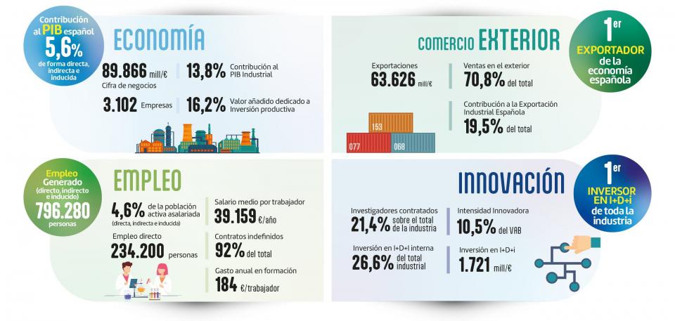 En los mercados internacionales, la facturación aumentó un 29,2%, alcanzando los 63.626 millones de euros. El sector sigue siendo el principal exportador de la economía española según la Clasificación Nacional de Actividades Económicas (CNAE), representando el 19,5% del total de las exportaciones industriales.