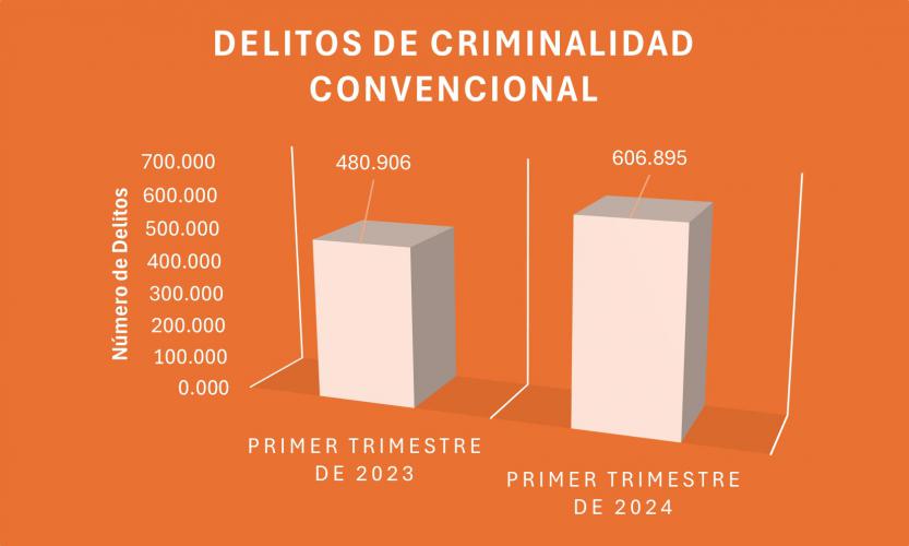 Según los balances trimestrales de criminalidad del Ministerio del Interior, el número total de infracciones penales registradas en España ha variado en los últimos años. Por ejemplo, en el primer trimestre de 2023, se registraron un total de 588,785 delitos, de los cuales 480,906 (81.7% del total) correspondieron a la categoría de criminalidad convencional. En el primer trimestre de 2024, hubo 606,895 hechos registrados, con 484,467 (79.8% del total) relacionados con la misma categoría.
