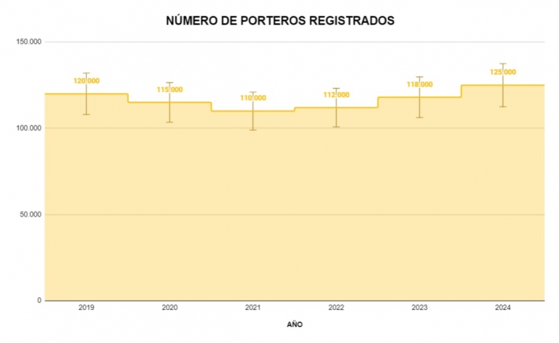 En los últimos años, la situación ha mejorado, con un crecimiento moderado en 2023 hasta alcanzar los 118,000 porteros, y un crecimiento sostenido en 2024, llegando a los 125,000, con una edad media de 50 años. Este aumento en la demanda puede atribuirse a la recuperación económica y a una mayor estabilidad en el sector, lo que ha permitido la contratación de más profesionales y una mejora en las condiciones laborales.