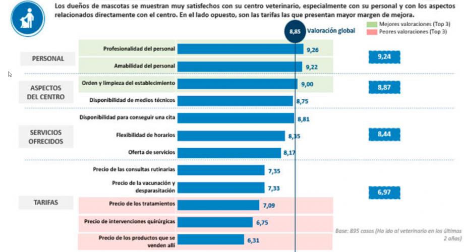 Según datos recopilados, los propietarios de animales de compañía más valoran de su clínica veterinaria de elección es la profesionalidad del personal (9,22 sobre 10) y su amabilidad en el trato (9,22 sobre 10) y, en tercer llugar, el aspecto de limpieza y orden del centro (9 sobre 10), siendo el tercer lugar el orden del centro es uno de los pilares más importantes para el clínica veterianaria. Con estos datos previamente expuestos, evidentemente es necesaria la precencia de un o una recepcionista en clínicas veterianarias.