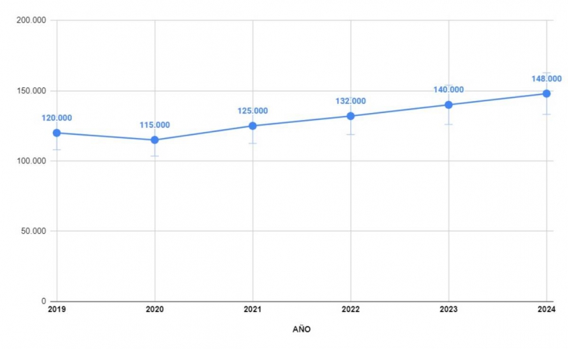 Entre 2019 y 2024, el número de responsables de planta en España ha mostrado una evolución notable, con periodos de contracción y crecimiento. En 2019, se registraban 120.000 profesionales en este puesto, pero en 2020, debido a diversos factores, como la pandemia y sus repercusiones económicas, la cifra disminuyó un 4,17%, bajando a 115.000. Este descenso fue un reflejo de la incertidumbre generalizada en el mercado laboral. No obstante, a partir de 2021, el sector experimentó una fuerte recuperación, con un incremento del 8,70%, alcanzando los 125.000 responsables de planta, y mantuvo una tendencia de crecimiento sostenido en los años siguientes. En 2022, el aumento fue del 5,60%, llegando a 132.000 profesionales, confirmando la reactivación del mercado.