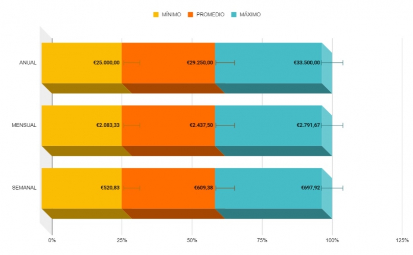 La perspectiva salarial para un secretario de alta dirección muestra una variabilidad notable dependiendo de factores como la experiencia, la ubicación y la empresa. En términos anuales, el salario mínimo se sitúa en aproximadamente 25.000 euros, mientras que el promedio asciende a unos 29.250 euros. En los casos más altos, el salario puede alcanzar hasta 33.500 euros. En términos mensuales, esto se traduce en un salario mínimo de unos 2.083 euros, un promedio de 2.438 euros y un máximo de 2.792 euros. Por semana, el rango salarial varía desde 520 euros hasta 698 euros.