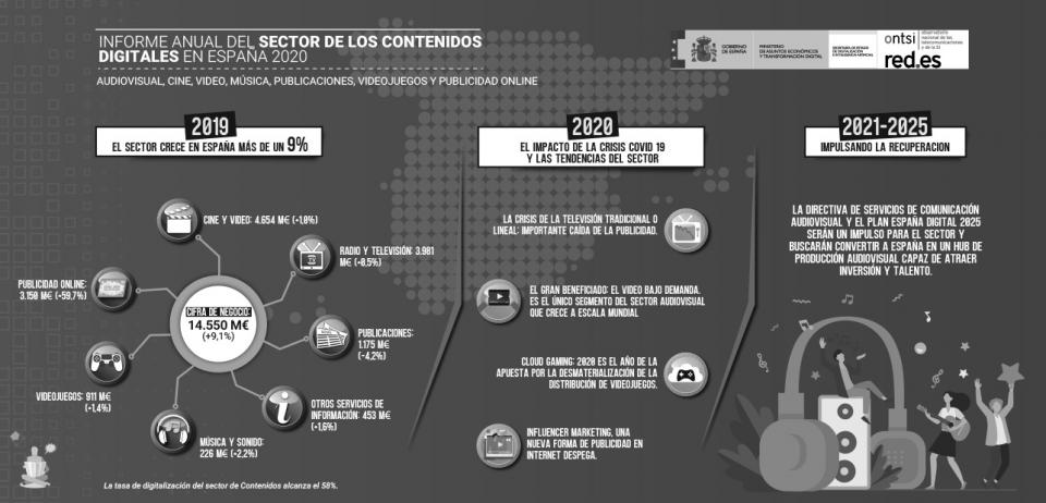 La cifra de negocio del sector de contenidos alcanzó 14.550.000.000€ tan solo en 2019, y desde entonces los indicadores de beneficios digitales no han parado de aumentar.
