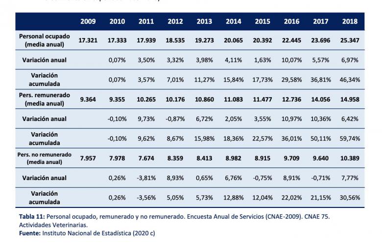 - Asímismo, el empleo ha crecido de forma regular desde 2009, cuando 9.719 personas trabajaban a tiempo completo en el sector veterinario, hasta llegar a contar con 12.259 trabajadores de plena jornada al cierre de 2018.