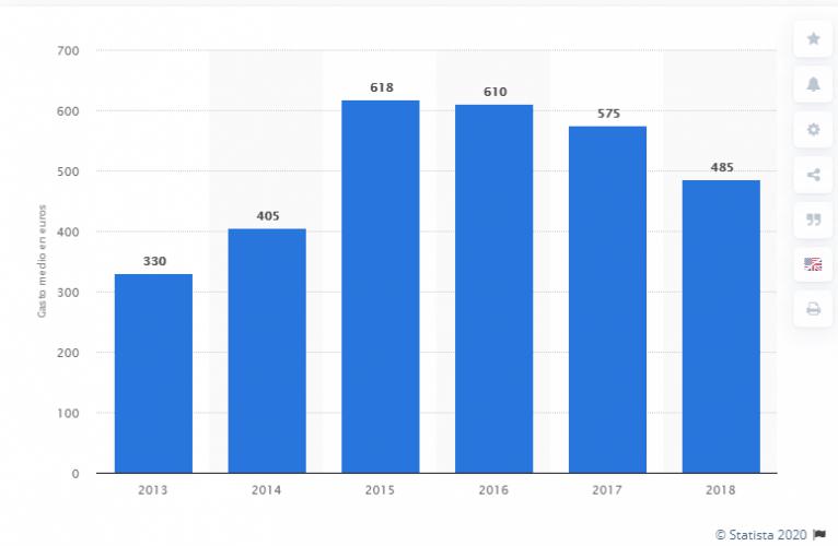 Un estudio muestra que en los últimos 6 años en nuestro país un 50% de los encuestados acudió al odontólogo una vez al año. Más de un 30% afirmó haberlo visitado cada 6 meses. Menos de un 10% lo hizo cada 3 meses y un 5% va cada 2 años. En el gráfico se ve la evolución por año del importe promedio gastado en el dentista por los pacientes desde 2013 a 2018:
