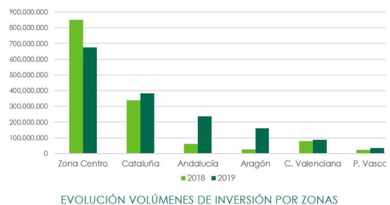 Este gráfico muestra la evolución de la inversión de los últimos dos años por zonas: