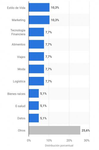 En el siguiente gráfico de años recientes podemos apreciar el ranking de los sectores con mayor inversión en tecnología de nuestro país, según frecuencia: