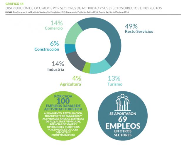 El turismo, ya lo decíamos arriba, es un auténtico caballo ganador en la economía española, y cada vez más estamos intentando equilibrarlo con el cuidado del entorno y el respeto a las comunidades. Según el estudio del Empleo en el Sector Turístico Español de Exceltur del año 2018 tenemos ocupadas en trabajos relacionados con el turismo a más de dos millones y medio de personas, más de un trece por ciento del empleo total. En euros, el negocio contribuye con más de 125.000 millones al año.