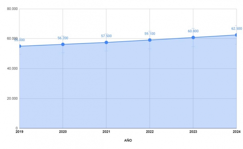 A lo largo de los últimos cinco años, el número de Técnicos en Farmacia ha experimentado un crecimiento constante. En 2019, la cifra total era de 55.000 profesionales. En 2020, este número aumentó ligeramente hasta los 56.200, lo que representó un incremento del 2,2%.