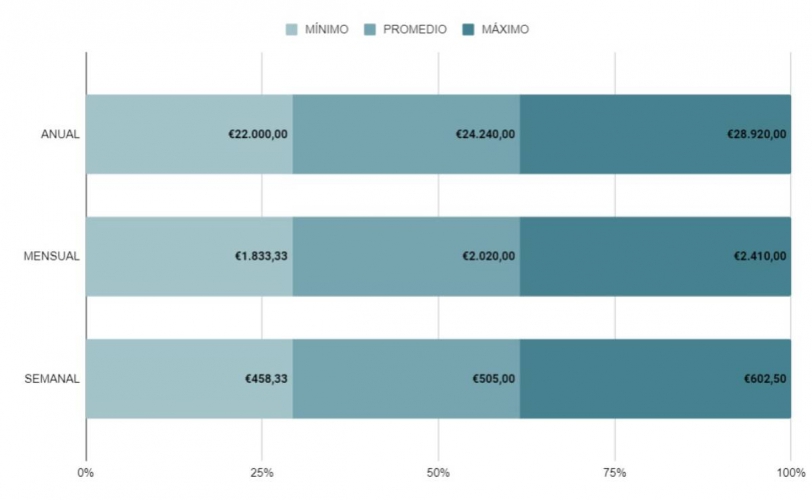 El Técnico en Farmacia en España presenta una remuneración que depende principalmente de la experiencia, la localización geográfica y el tipo de establecimiento donde trabaje. En términos generales, el salario anual mínimo para este profesional se sitúa en 22.000 €, con un promedio de 24.240 €, y puede alcanzar un máximo de 28.920 €. Esto se traduce en un salario mensual que varía entre 1.833 € y 2.410 €, con un promedio mensual de 2.020 €. De manera semanal, los ingresos oscilan entre 458 € y 602 €, siendo la media de 505 € por semana.