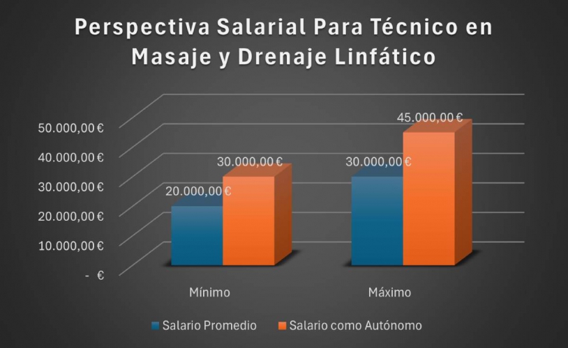 La perspectiva salarial para los Técnicos en Masaje y Drenaje Linfático en España varía en función de varios factores, como la ubicación geográfica, la experiencia, la especialización, y el tipo de empleo (autónomo o asalariado). Generalmente, los ingresos anuales para estos profesionales oscilan entre los 20,000 y 30,000 euros. Aquellos que trabajan en clínicas privadas o centros de salud especializados suelen tener un salario fijo que se complementa con comisiones por paciente o por sesión, lo que puede incrementar sus ingresos totales.
