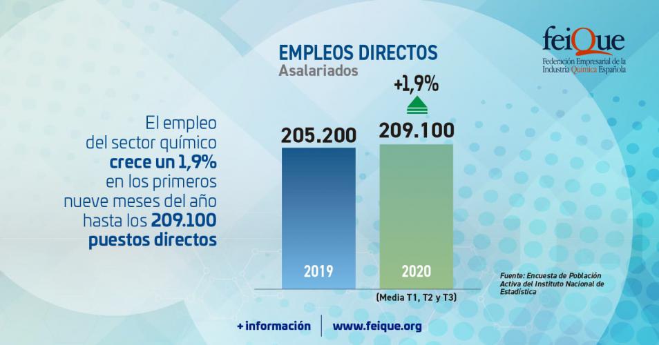 Por tanto, estos datos vienen a demostrar que el sector químico e industrial no solo ha mantenido empleos durante una de las crisis mundiales más importantes de los últimos tiempos, sino que además ha creado nuevos puestos de trabajo y dinamizando una parte importante del mercado económico. Teniendo en cuenta que, además, a los puestos generados de forma directa hay que sumar más de 500.000 empleos indirectos y una media de 711.000 puestos (directos, indirectos e inducidos) durante los primeros 9 meses de 2020, catorce mil más que la media con la que el sector cerró 2019.
