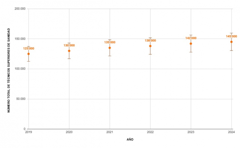 Evolución del Número de Técnicos Superiores de Sanidad en España (2019-2024)