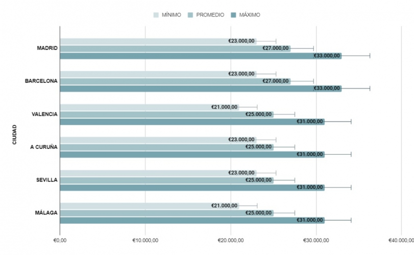 En general, la remuneración de este perfil profesional tiende a ser más alta en Madrid y Barcelona, mientras que en otras ciudades importantes como Valencia, A Coruña y Sevilla, los salarios se mantienen en niveles similares, aunque ligeramente inferiores. Esta diferencia se debe a la demanda y coste de vida en las grandes ciudades, que suele ser más elevado.
