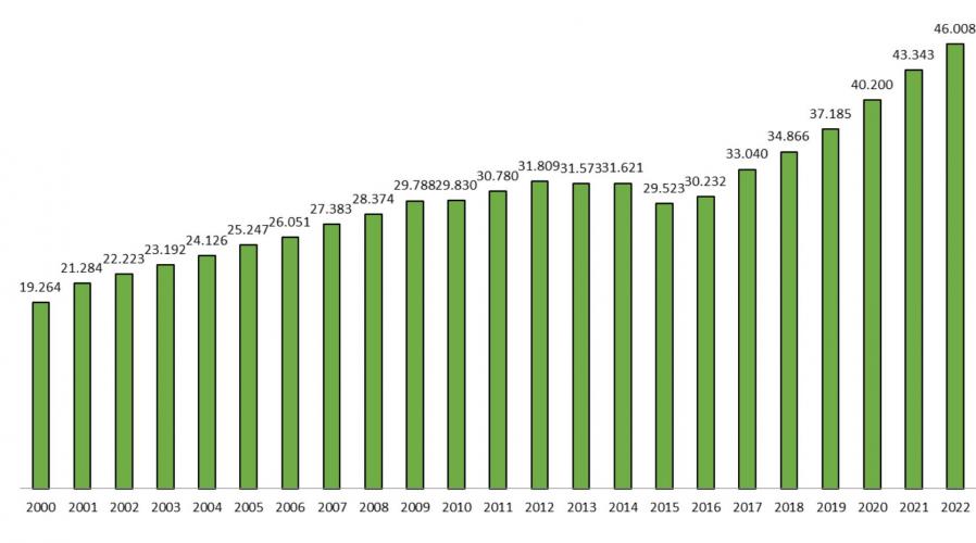 A continuación te presentamos el número de trabajadores sociales en españa desde el año 2000 a 2022.