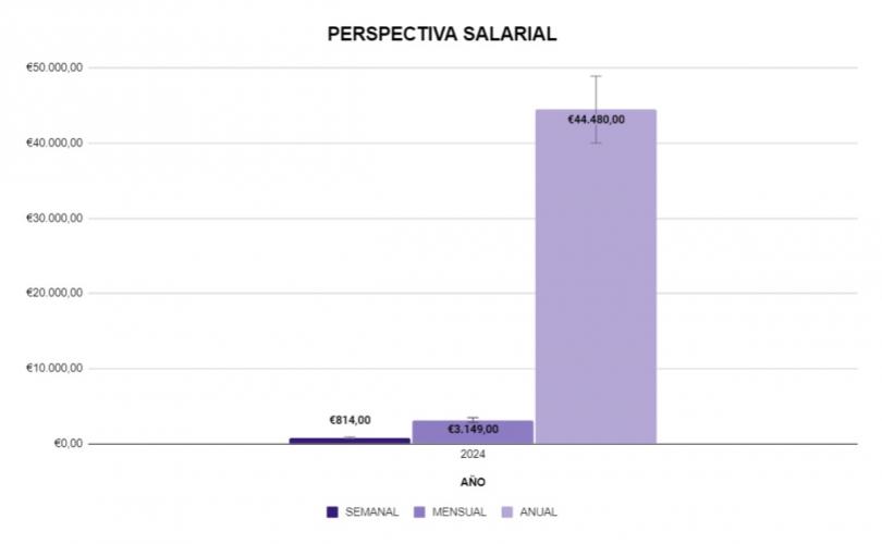 En 2024, el salario promedio de los profesionales en esta área muestra una tendencia de crecimiento notable. A nivel semanal, los ingresos alcanzan los 814 euros, lo que se traduce en un salario mensual de aproximadamente 3.149 euros. Este monto equivale a un ingreso anual total de 44.480 euros.