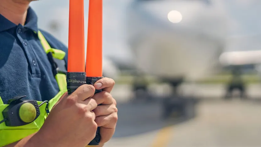 Señalero aeroportuario / señalera aeroportuaria