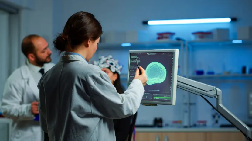 - Podrás poner en práctica tus conocimientos en laboratorios virtuales. En las asignaturas correspondientes al ámbito neurológico y de neuroanatomía utilizarás plataformas de simulación y navegación por mapas cerebrales, aplicando los conceptos teóricos a un modelo neuroanatómico real o a ejemplos de neuroimagen a partir de cerebros reales.