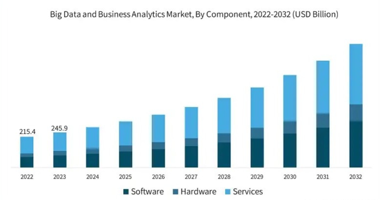 El mercado de Big Data y Business Analytics alcanzó un valor de 245.900 millones de USD en 2023 y se proyecta que crecerá a una tasa compuesta anual (CAGR) del 15% entre 2024 y 2032.