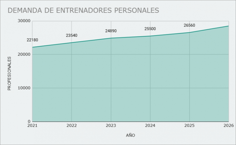 - La demanda de entrenadores personales crece aproximadamente un 12 % cada año, apoyada por un incremento sostenido en la práctica habitual de actividad física en todas las edades.