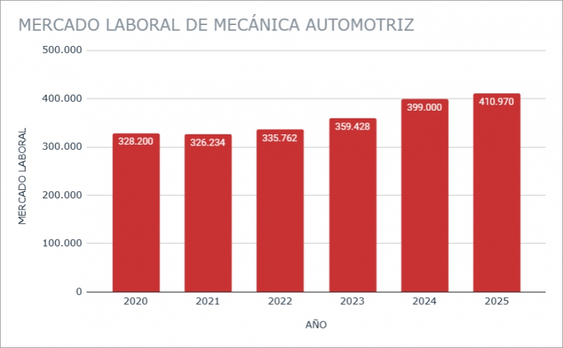 - Con el creciente parque de vehículos eléctricos e híbridos, la demanda de mecánicos especializados ha crecido notablemente, ampliando las salidas laborales hacia mantenimiento eléctrico, baterías y sistemas modernos, lo que convierte la reconversión técnica en una ventaja competitiva.