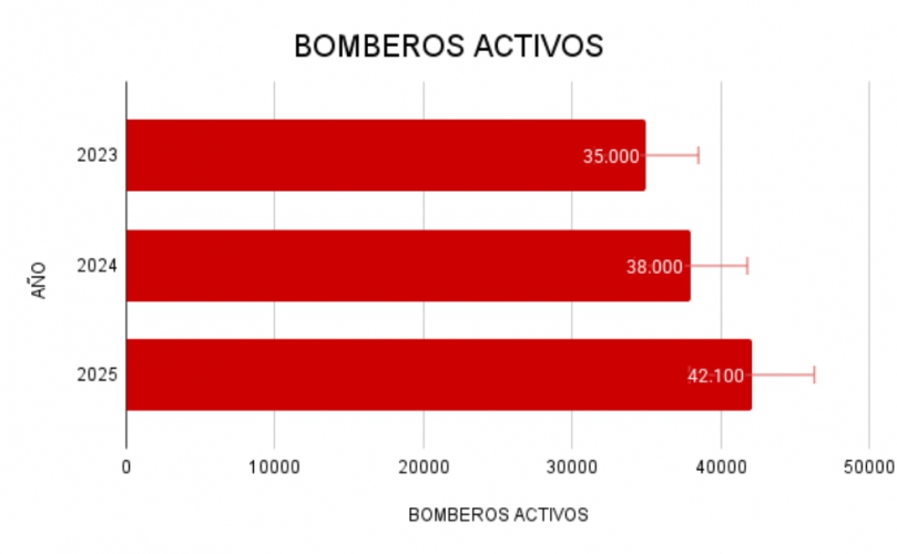 En 2023 la cifra se situaba en torno a 35.000 profesionales, pero en 2024 se observa un aumento notable hasta los 38.000, impulsado por nuevas convocatorias y procesos de ampliación de plantillas autonómicas y municipales. Para 2025 la tendencia continúa al alza, alcanzando aproximadamente 42.100 efectivos, lo que sugiere un esfuerzo sostenido por reforzar los servicios de emergencia ante un contexto de mayor demanda operativa y necesidad de modernización.